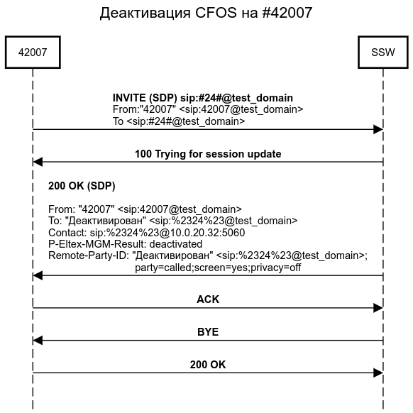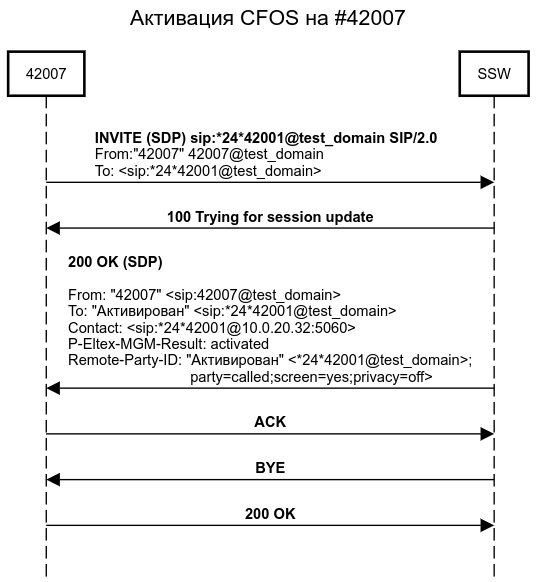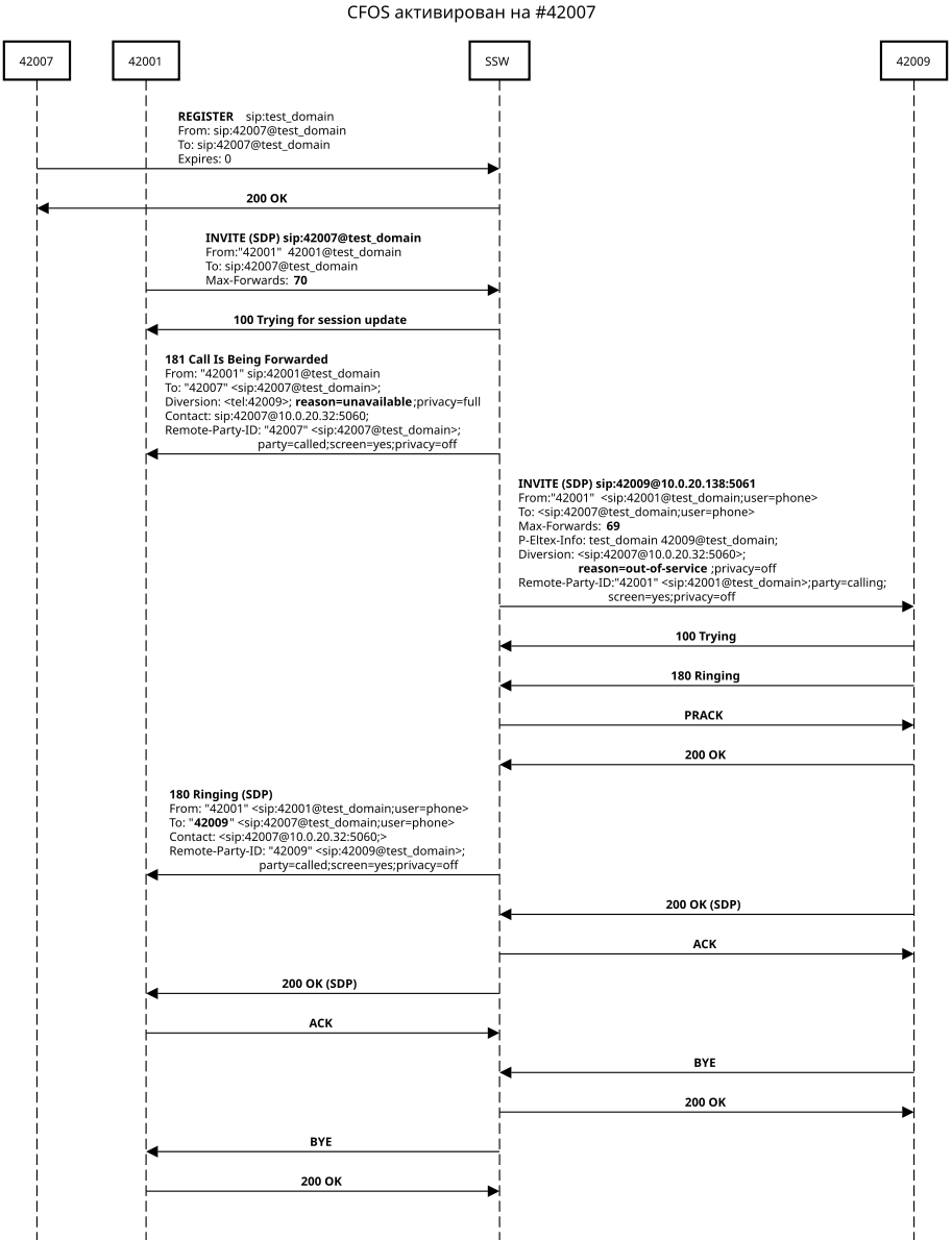 - Абонент B(42007) активизировал услугу CFOS.
