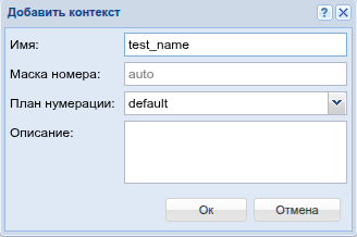 В диалоговом окне "Добавить контекст" ("Add context") введите имя контекста маршрутизации (в данном примере "test_name").