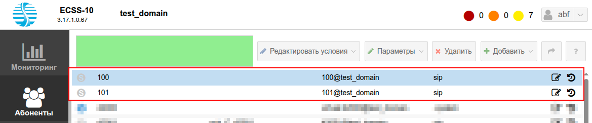 В системе будут созданы 2 SIP абонента 100 и 101: