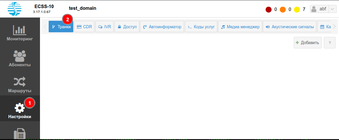 Нажмите кнопку "Создание транка" ("Trunk manager") для добавления транка: