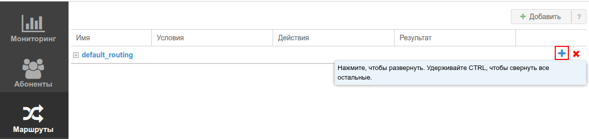 Для создания правила маршрутизации перейдите в раздел "Маршруты". Нажмите на иконку добавления правила в контекст:
