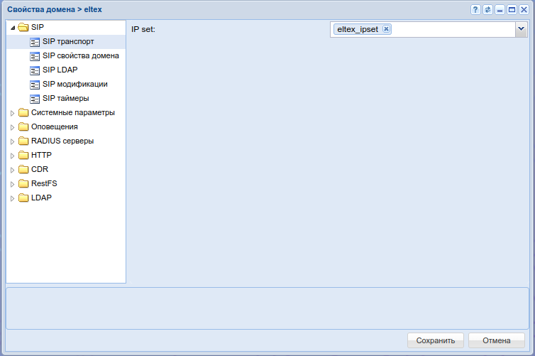 6. Во вкладке «SIP» перейдите в «SIP-транспорт» и выберите созданный IP Set.