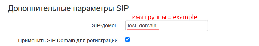 • при конфигурации ТА в поле SIP домен указали реальный домен (имя вАТС) а не имя группы, регистрация будет не успешной , абонент создан не в домене, а в группе динамических абонентов: