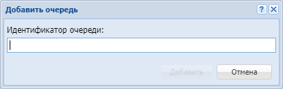Для добавления очереди кликните мышкой на раздел очереди и нажмите кнопку , введите "Идентификатор очереди" ("Queue ID").