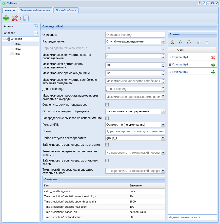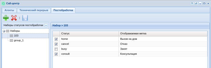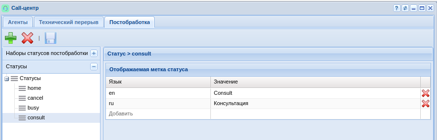 Приложение web-конфигуратора "Call-центр" ("Call-center") используется для создания агентов, очередей и причин технического перерыва через расширенный web-конфигуратор.