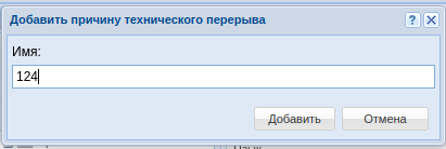 Для добавления причины технического перерыва выбираем раздел "Причины" и нажимаем кнопку