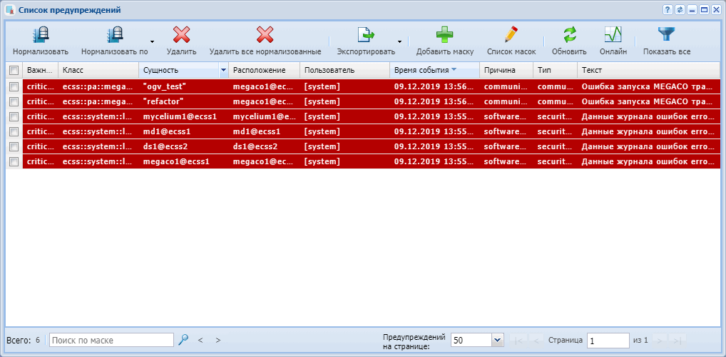 Кнопкой "Нормализовать" (Clear) выполняется нормализация предупреждений в системе.