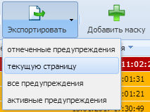 Кнопкой "Экспортировать" ("Export") выполняется экспорт данных о предупреждениях по определенным критериям: