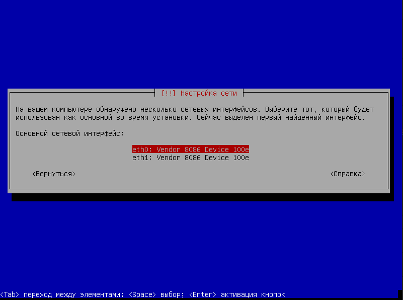 Выбрать Eth интерфейс, если их несколько, как основной для установки ОС