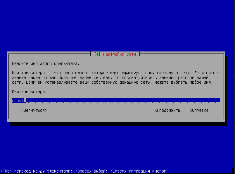 Ввести имя хоста, в примере "ecss1"