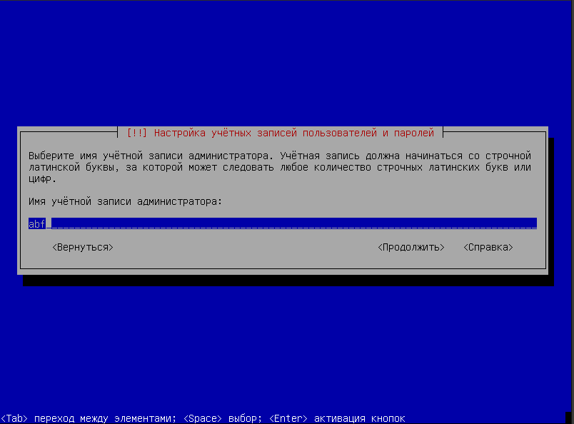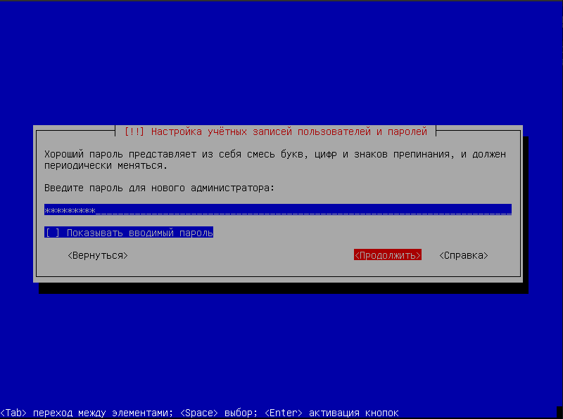 Указать пароль для администратора системы