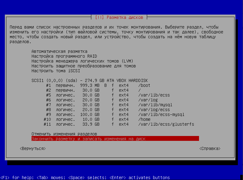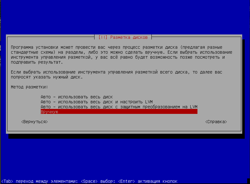 Выбрать ручную конфигурацию партиций диска