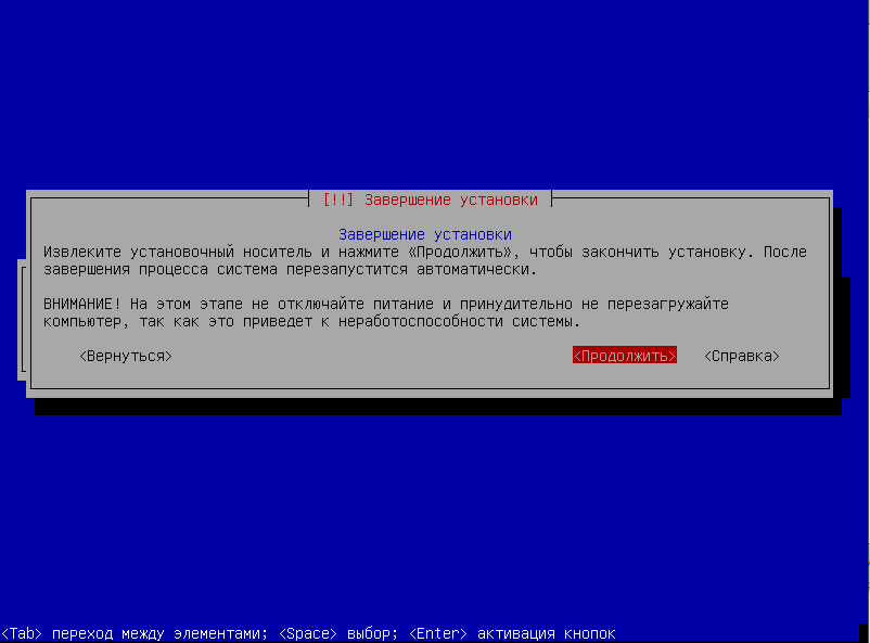 Завершение установки
