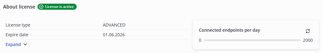 Go to the “Licensing” section. The page will display information about the active license: