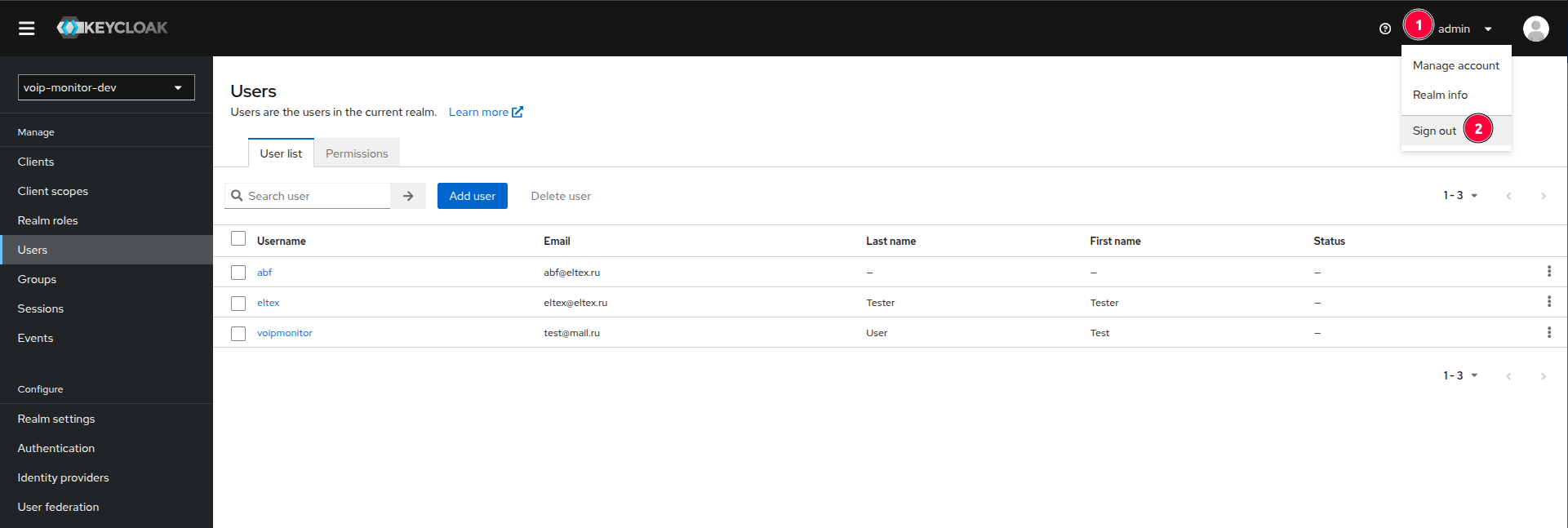 Войдите в систему (https://10.0.20.59) созданным пользователем (для примера eltex):