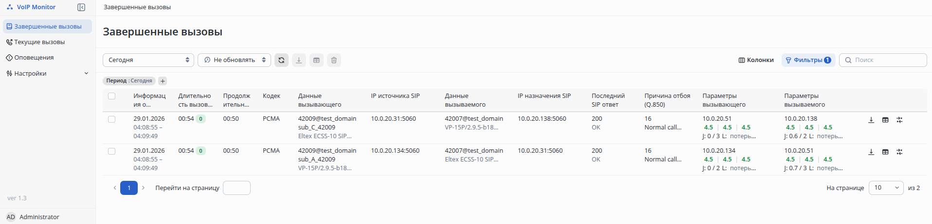 После изменений в конфигурационном файле требуется перезапустить контейнер "voipmonitor-core-sniffer", чтобы сервис обновил актуальную конфигурацию. Для этого выполните команды: