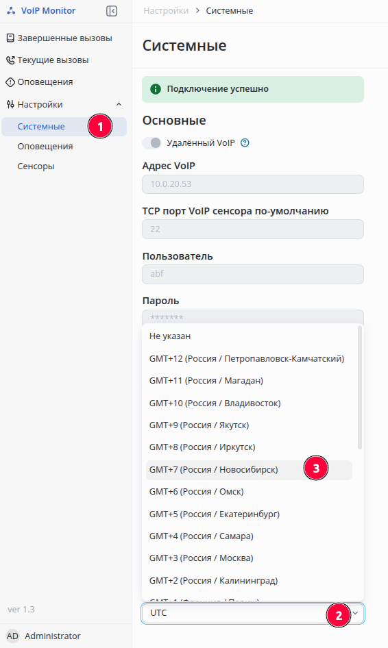 Чтобы получать данные о начале/окончании разговора в корректном часовом поясе следуйте следующим настройкам (по окончанию сохраните):