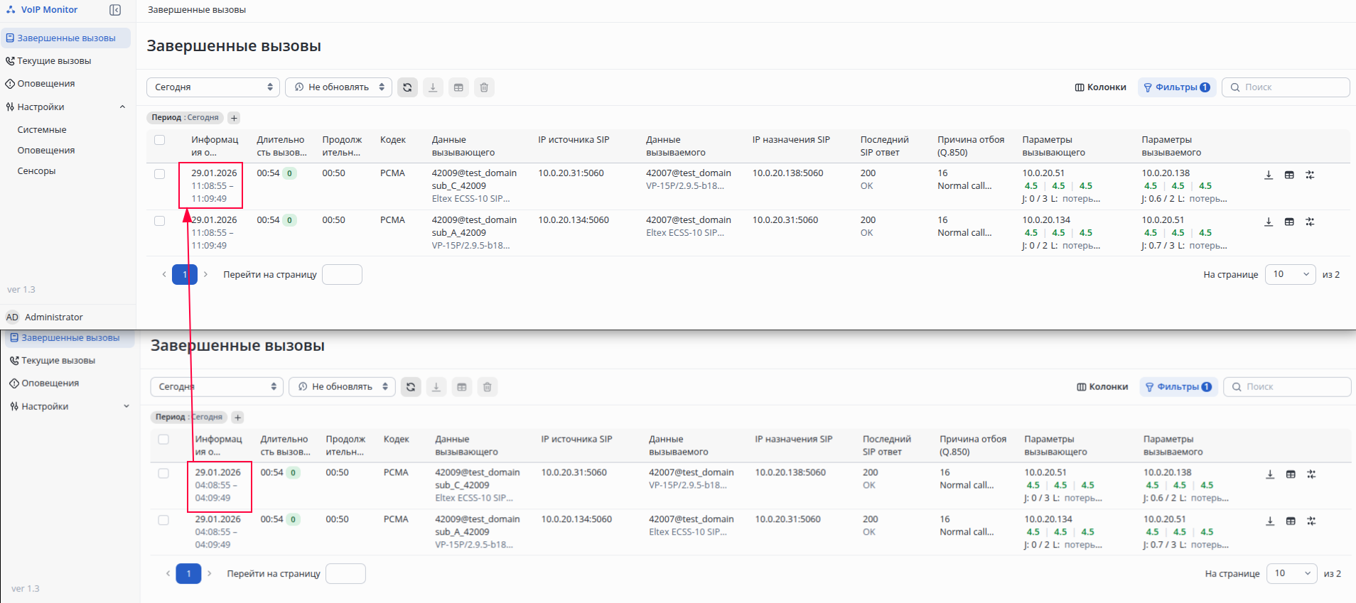 Информация о времени звонка сразу обновится на корректный часовой пояс: