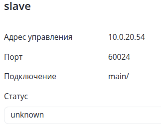 - IPadd-адрес сервера "Slave" указанного при инсталляции (в примере 10.0.20.54)