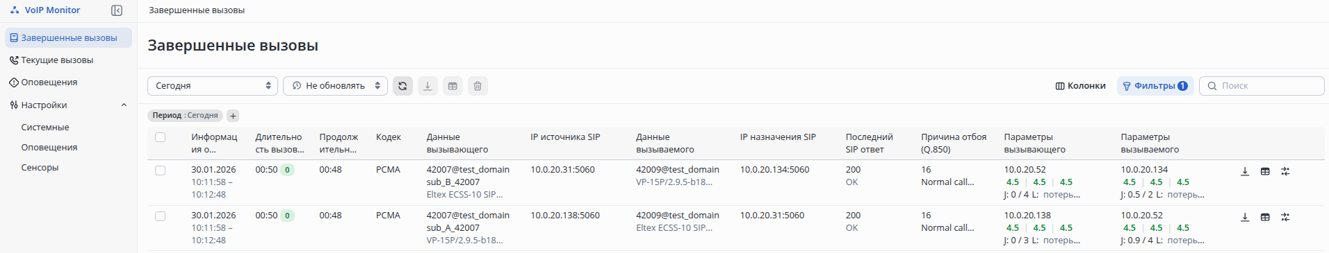 При входе в веб-интерфейс VoIP Monitor открывается страница "Завершенные вызовы":