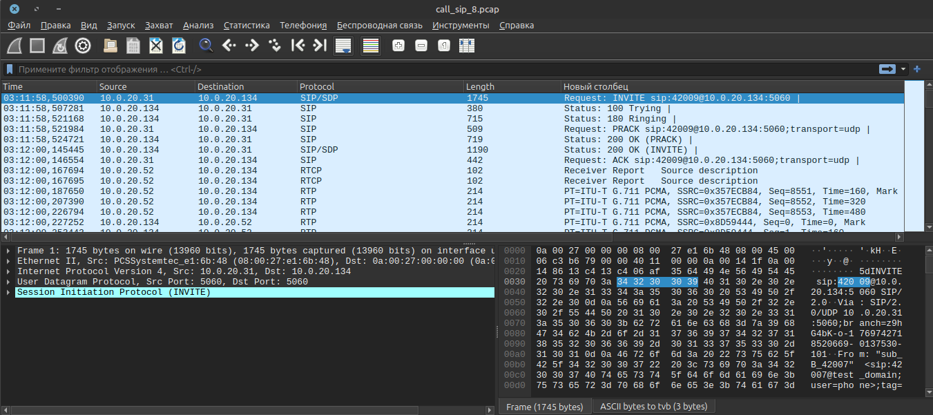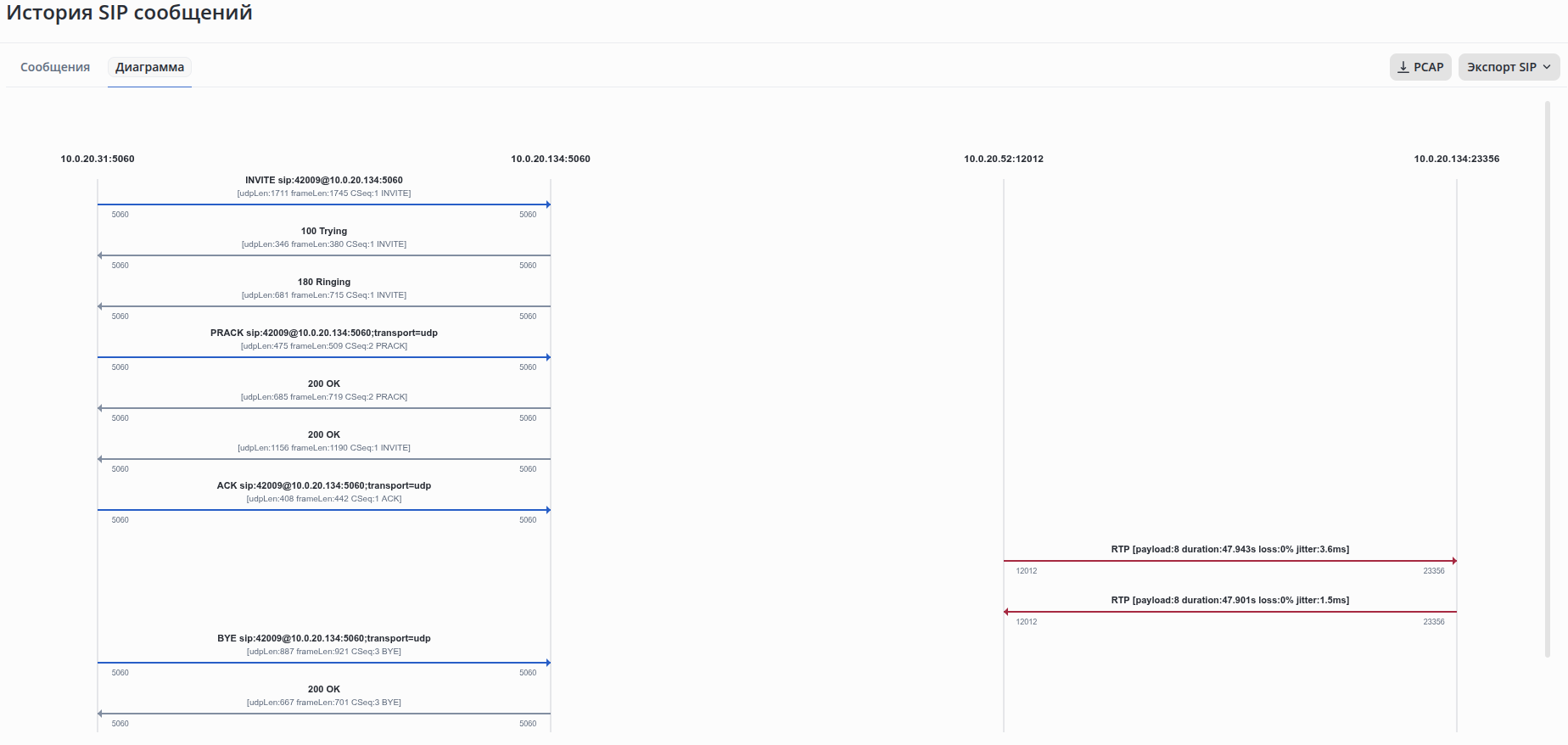 Есть возможность скопировать PCAP для последующей обработки нажатием кнопки(в PCAP-файл будут скопированы не только SIP-сообщения, но и rtp/rtcp):