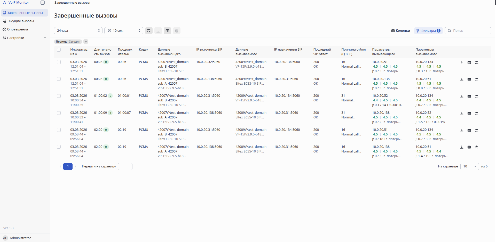 Подключитесь к веб-интерфейсу и проверьте правильность работы VoIP-Монитора: