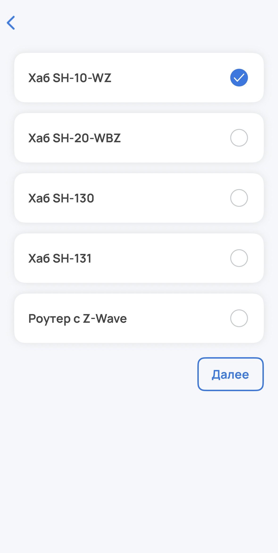 Выберите тип добавляемого устройства: хаб (SH-10-WZ/SH-20-WBZ/SH-130/SH-131) или роутер c Z-Wave.
