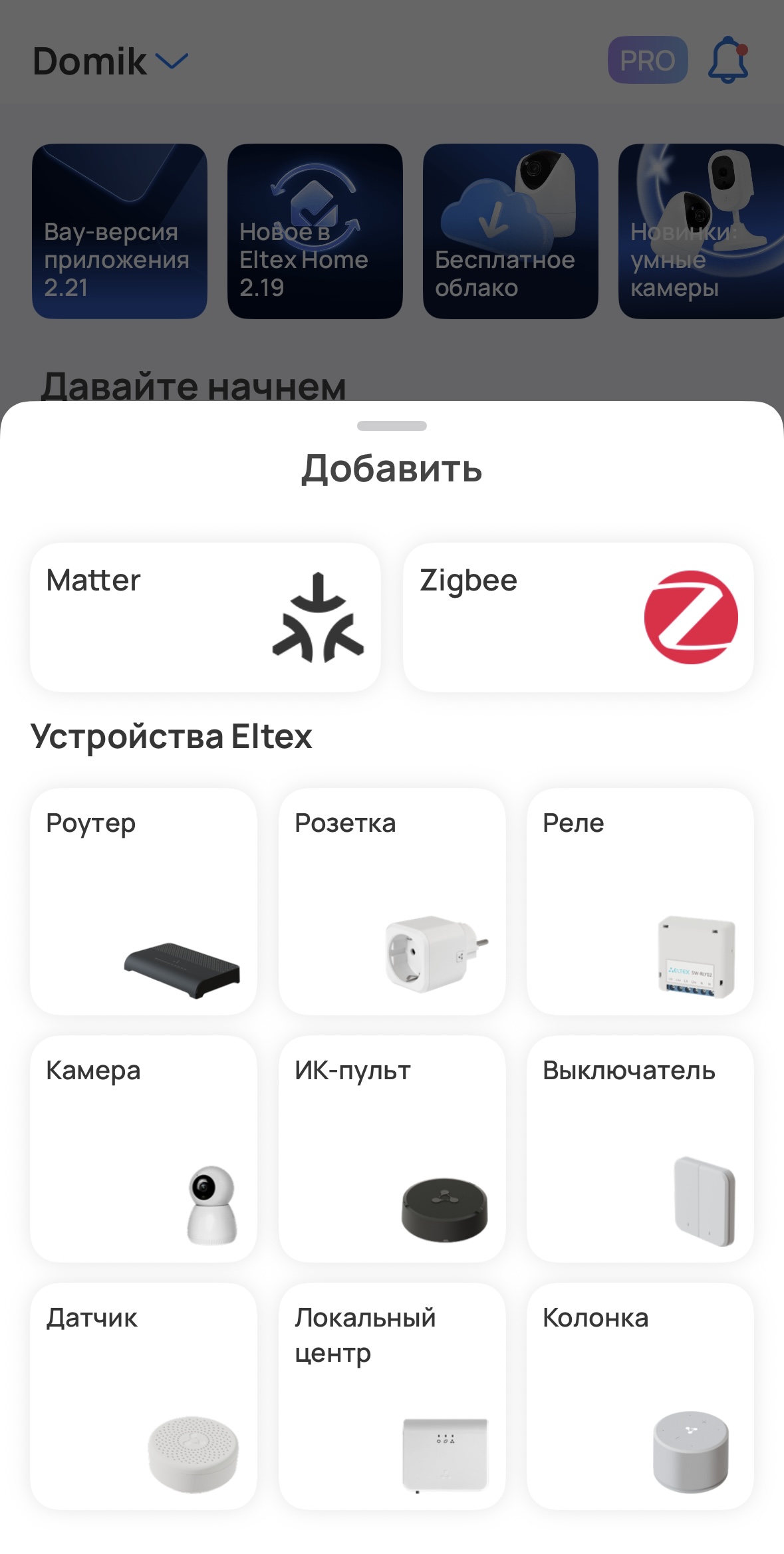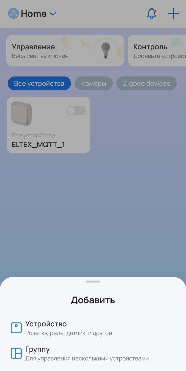 Устройства, добавленные в Eltex Home, будут отображены в приложении «Салют!».