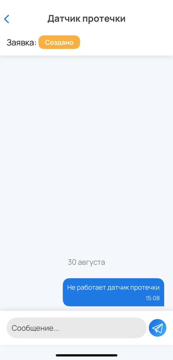 В пункте Созданные обращения будут отображены ваши заявки и их текущий статус. При нажатии на заявку откроется чат с инженером технической поддержки.