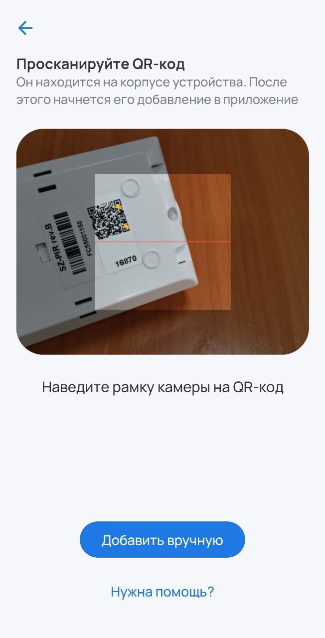 Отсканируйте штрихкод, который находится на корпусе устройства, или введите серийный номер SL-10-WBZ вручную. Нажмите Продолжить.