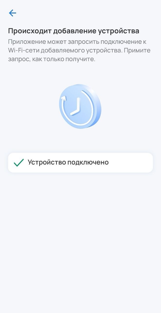 Когда соединение с платформой будет установлено, в приложении отобразится уведомление об этом. Также произойдет возврат на главную страницу приложения.