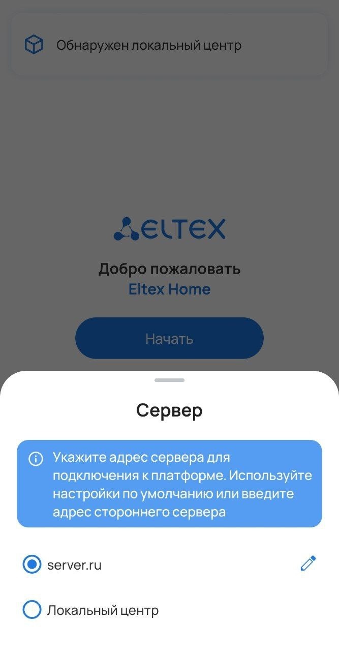 2. Откройте приложение. На экране входа вы увидите уведомление, что обнаружен локальный центр.