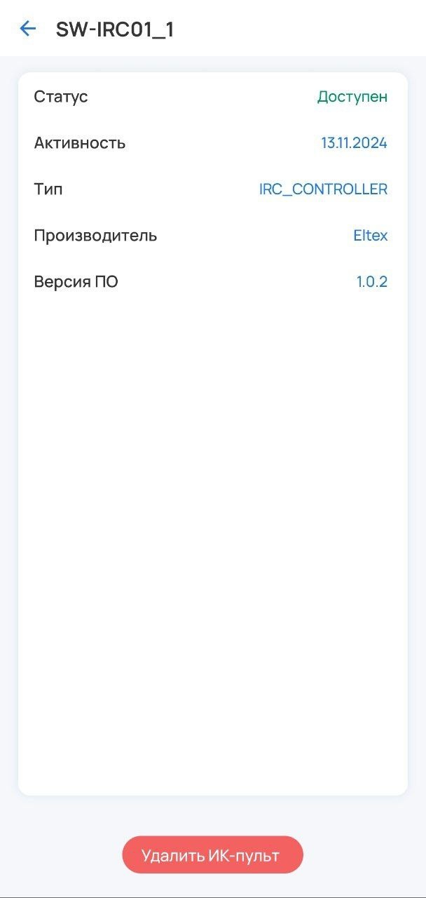 - В разделе ИК-пульты можно посмотреть информацию об устройстве и удалить ИК-пульт.