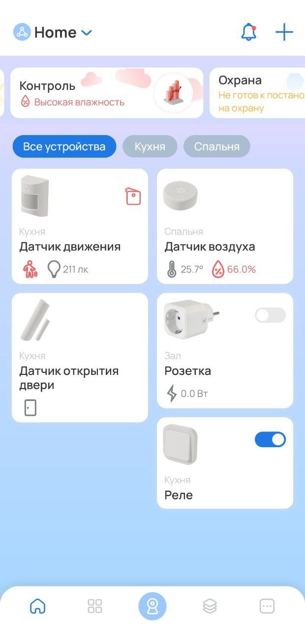 Устройства подключаются к платформе по протоколам Z-Wave, Zigbee, Matter over Thread, Matter over Wi-Fi или по Wi-Fi.
