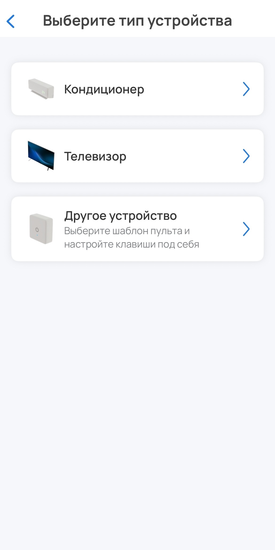 Если в приложении уже есть устройства, нажмите на иконку в правом верхнем углу экрана и выберите пункт Устройство.