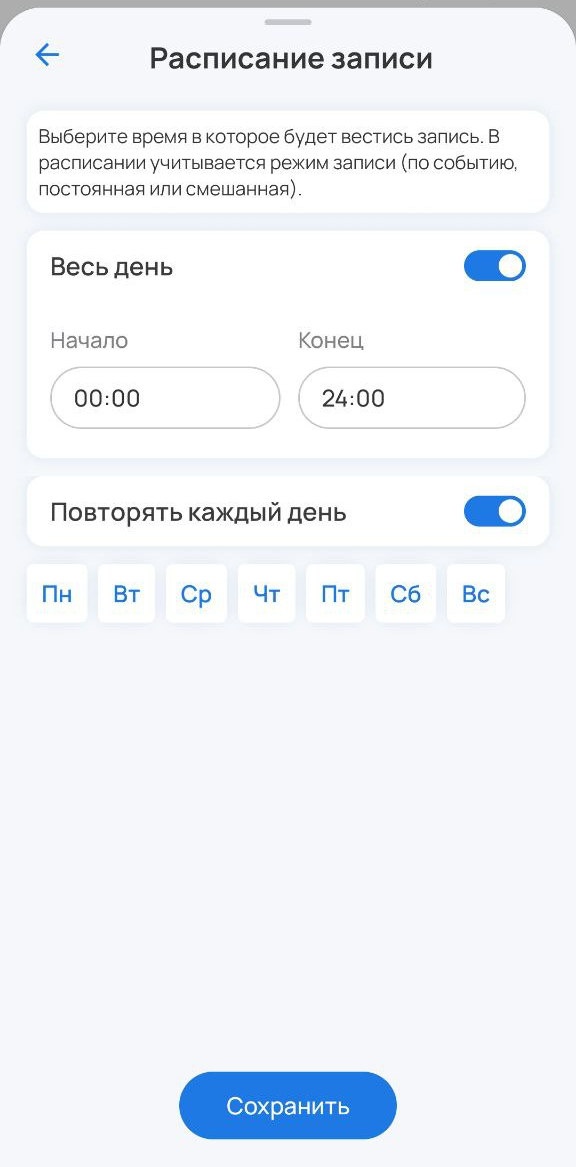 Сценарий по времени запуска запустит сценарий в конкретный промежуток дня. Для добавления условия необходимо выбрать начальную и конечную границы временного интервала.