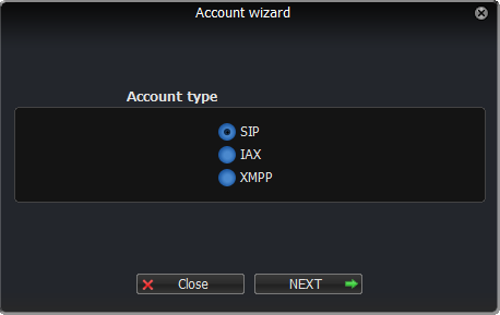 Рисунок 1 — Создание новой учетной записи Выберите тип аккаунта «SIP», рисунок 2. Нажмите «Next».