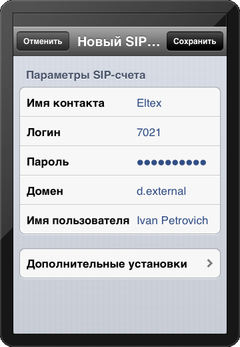 Нажмите кнопку «Готово», а затем «Сохранить». В списке SIP-счетов появится новая запись «Eltex».