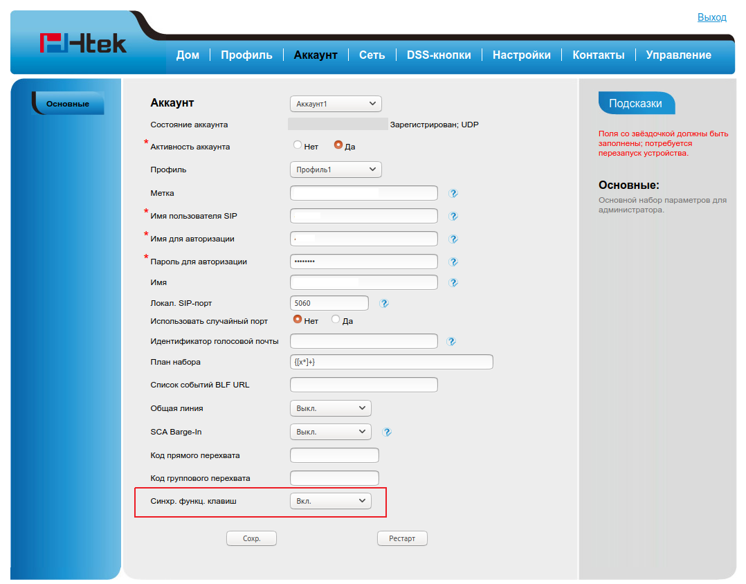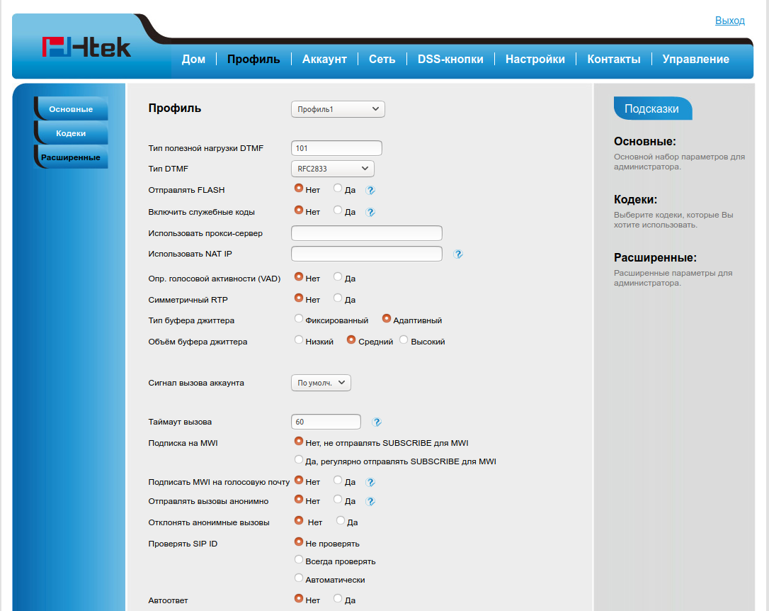 Настройка на ТА Htec
