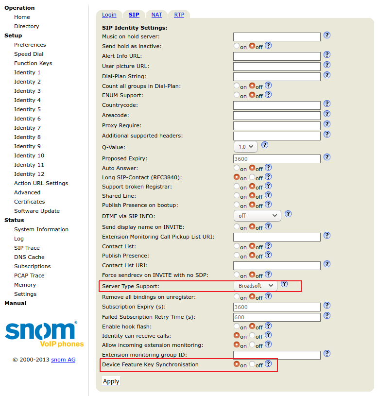 "Identity" -> "SIP" -> "Device Feature Key Synchronisation" -> on