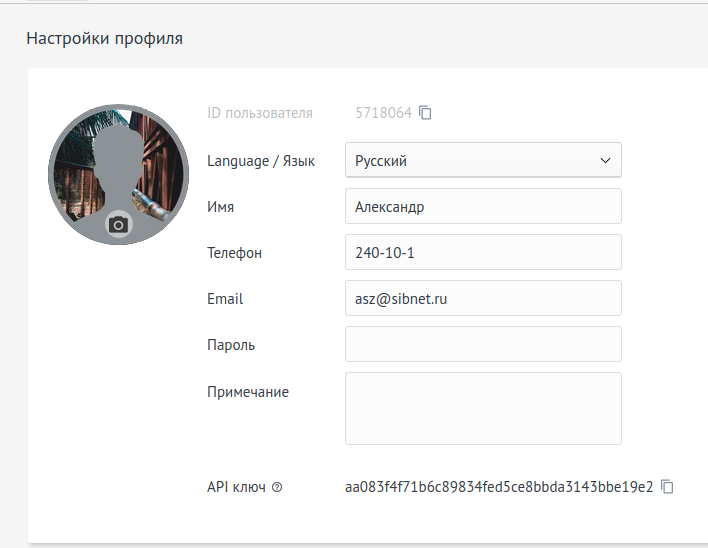Каждому пользователю, который планирует использовать виджет телефонии ECSS-10, необходимо указать номер телефона абонента ECSS-10 в профиле пользователя amoCRM. Настройки профиля можно изменить, кликнув на рисунок в левом верхнем углу интерфейса amoCRM: