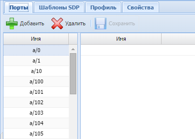 Во вкладках "Порты" ("Ports"), "Шаблоны SDP" ("SDP templates"), "Профиль" ("Profile"), "Свойства" ("Properties") выполняются настройки для определенного шлюза.