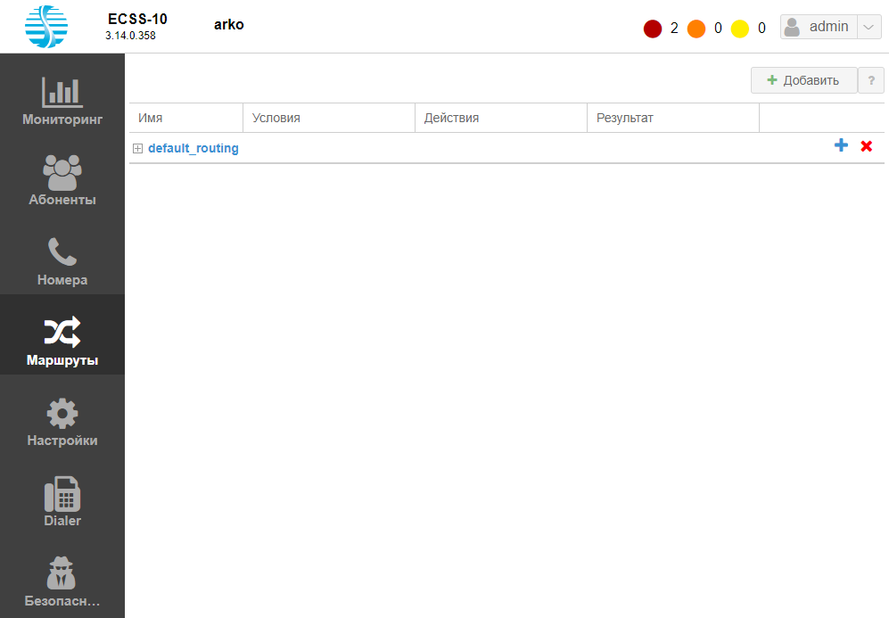 В разделе "Маршруты" ("Routes") приводится список контекстов маршрутизации виртуальной АТС.