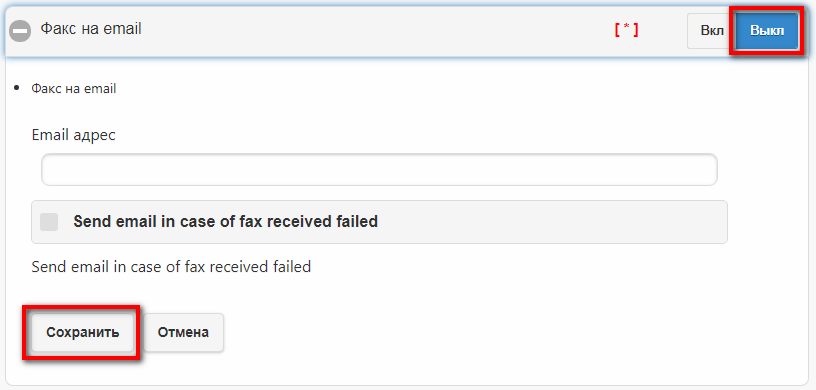 Для отключения услуги нажмите кнопку "Выкл" напротив данной услуги и далее кнопку "Сохранить".