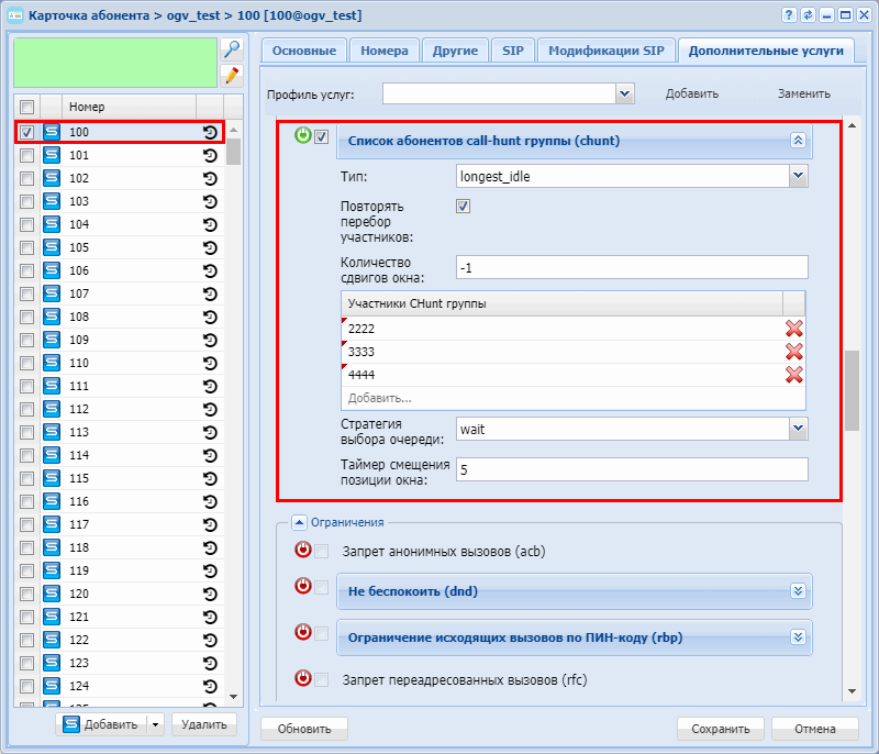 - 3.14.3 Поиск по наименее нагруженному номеру (CHunt longest idle)
