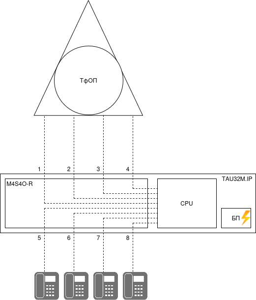 Cхема включения аналогового шлюза TAU-32M.IP с FXO портами..png