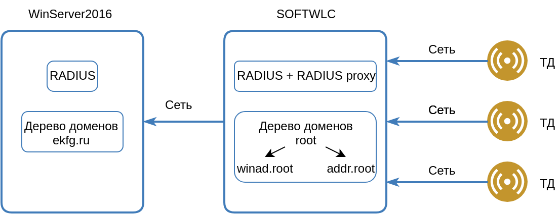На SoftWLC настроено несколько доменов, в которые заведены точки доступа. SSID можно привязать к определенному домену, и при подключении пользователя к сети Wi-Fi , трафик будет проксироваться на radius сервер который установлен на Windows сервере. Далее AD, согласно настроенных политик проверит сертификат TLS и разрешит подключение к сети Wi-Fi . Чтобы схема работала, нам необходимо: