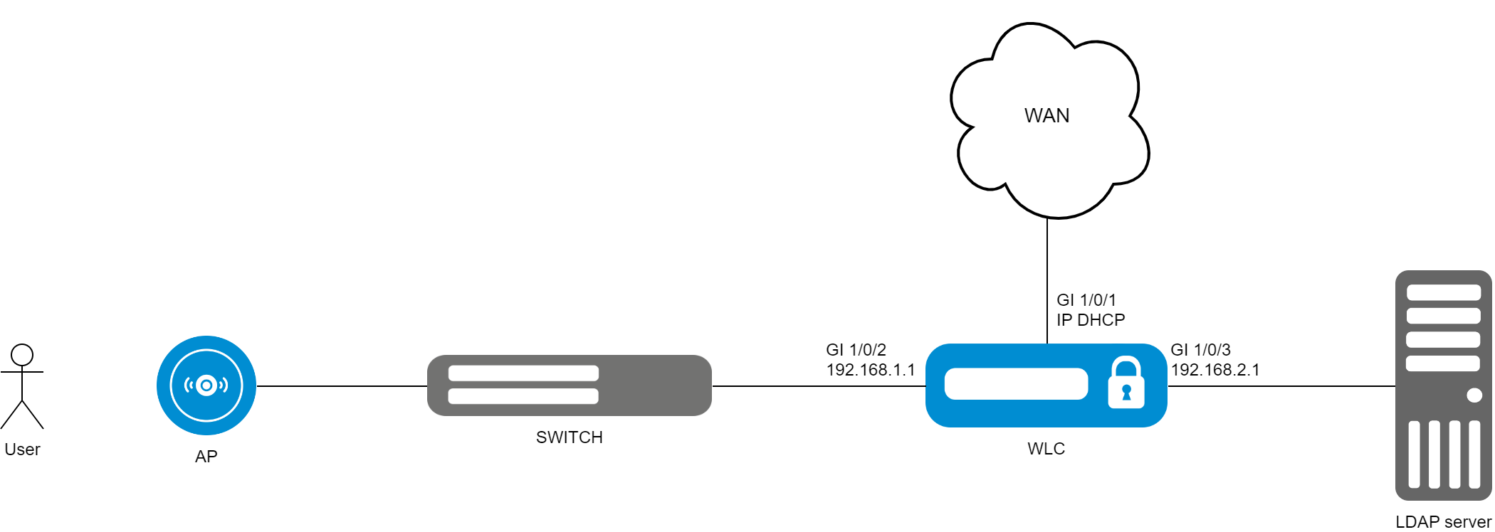 To test, an access point must be connected to the WLC and an SSID with Enterprise authorization must be configured.
