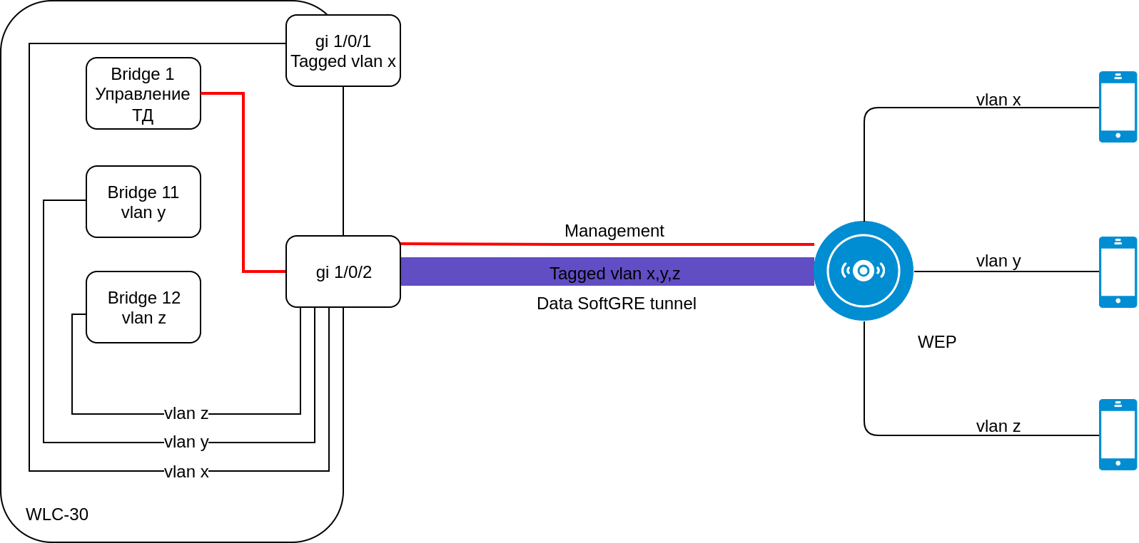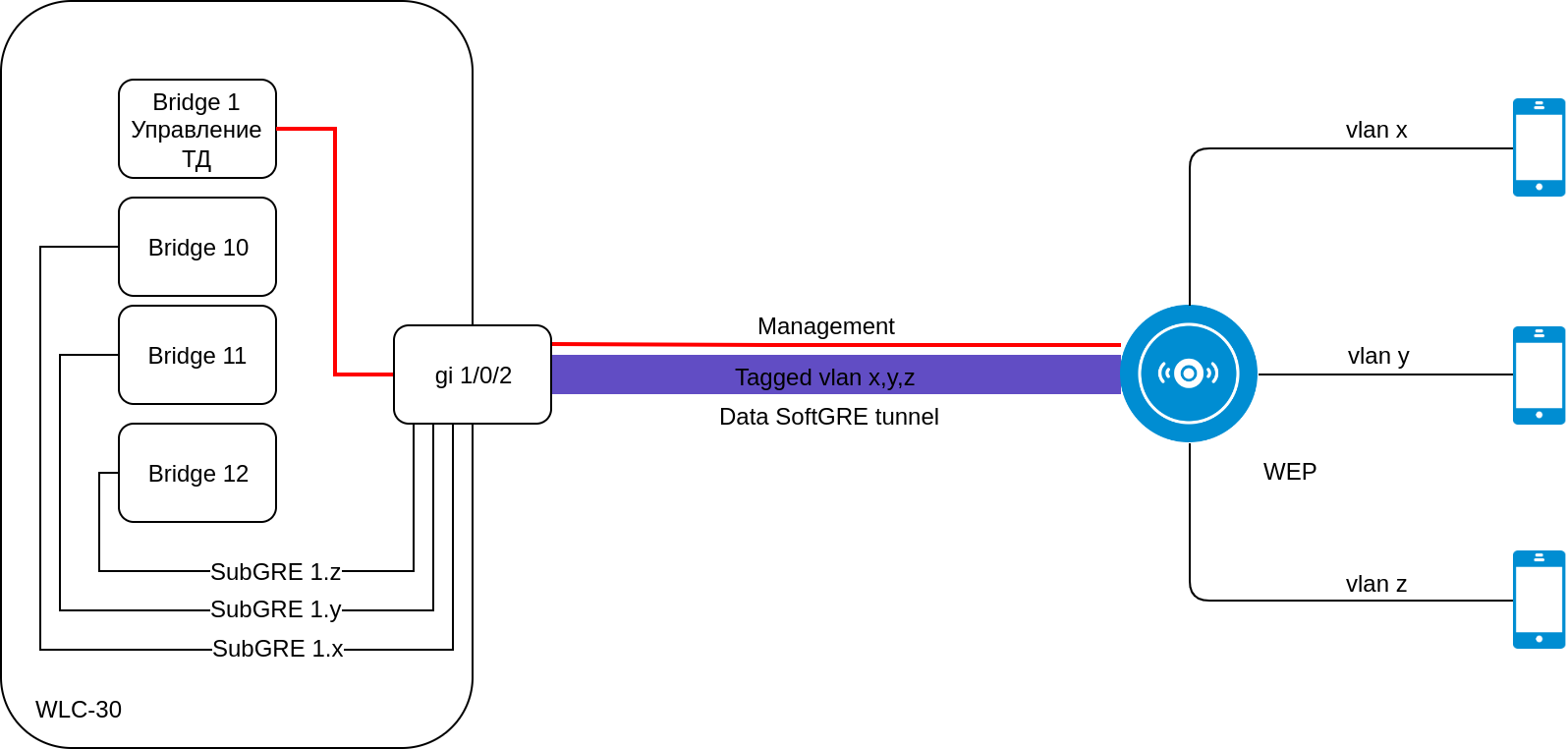 Клиентский трафик приходит с ТД в gre-туннель с заданным тегом vlan, на стороне WLC для каждого vlan создается отдельный subgre-туннель и включается в заданные Bridge, при выходе из subgre метка vlan снимается. При такой реализации для каждого vlan нужно создавать subgre-туннель и включать его в один из Bridge. WLC не знает vlan, которые выдаются в момент авторизации по radius (если используются c-vlan с внешним radius-сервером), и не может поднять туннели для таких клиентов. ![]()