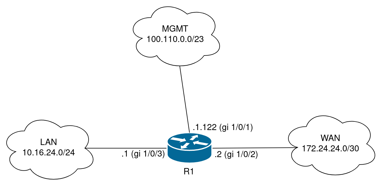 2. Разрешить SSH-подключение к маршрутизатору R1 из сети MGMT для администратора сети в отдельном экземпляре VRF;